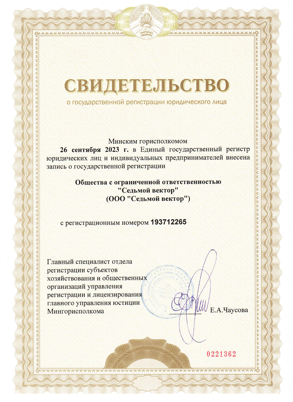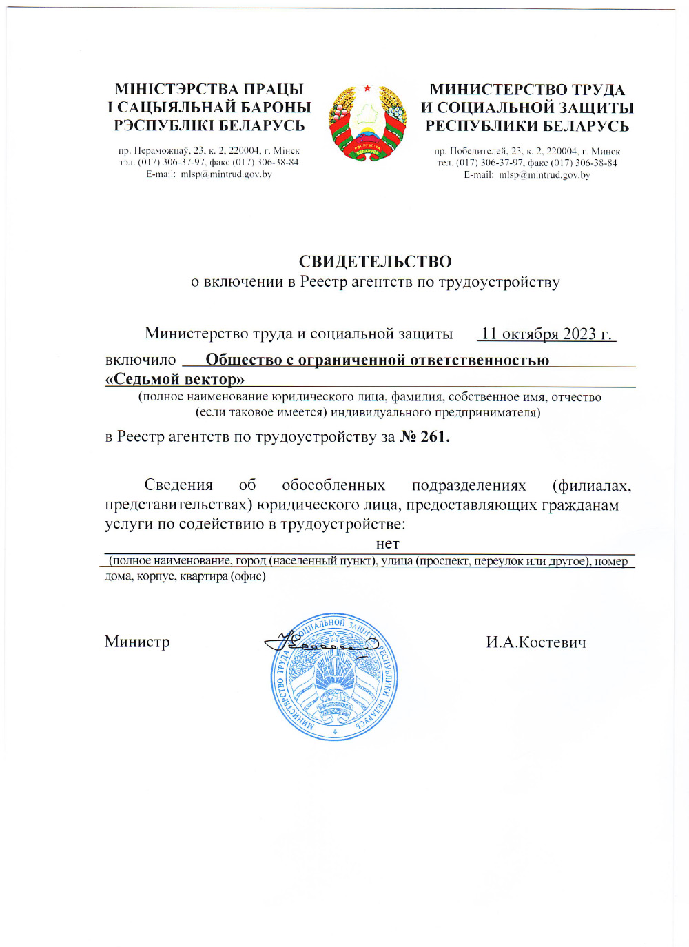 Юридический и почтовый адрес:220018 Республика Беларусь, г. Минск,ул. Одоевского 131, пом. 10 (кабинет 15) УНП: 193712265Время работы: пн — пт9:00 — 18:00E-mail: info@7v.byТел: +375 44 500-05-01